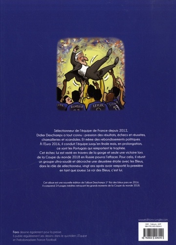 Sélectionneur de l'équipe de France depuis 2012, Didier Deschamps a tout connu : pression des résultats, échecs et réussites, chamailleries et scandales. Et même des rebondissements politiques. A l'Euro 2016, il conduit l'équipe jusqu'en finale mais, en prolongation, ce sont les Portugais qui remportent le trophée. Cet échec lui est resté en travers de la gorge et seule une victoire lors de la Coupe du monde 2018 en Russie pourra l'effacer. Pour cela, il réunit un groupe ultra-soudé et décroche une deuxième étoile avec les Bleus, dans le rôle de sélectionneur, vingt ans après l'avoir remportée en tant que joueur. Le Roi des Bleus, c'est lui.