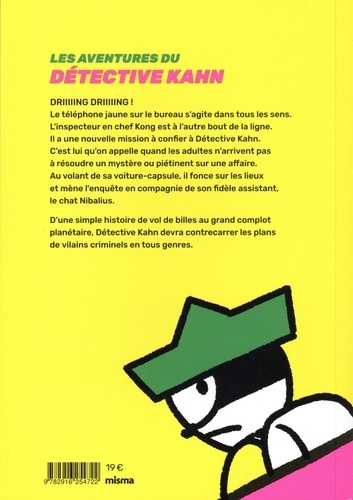 DRIIIIING DRIIIIING ! Le téléphone jaune sur le bureau du Détective Kahn s'agite dans tous les sens. L'inspecteur en chef Kong est à l'autre bout de la ligne. Il a une nouvelle mission à confier à notre Sherlock Holmes en culotte courte. C'est lui qu'on appelle quand les adultes n'arrivent pas à résoudre un mystère ou piétinent sur une affaire. Au volant de sa voiture-capsule, il fonce sur les lieux et mène l'enquête en compagnie de son fidèle assistant, le chat Nibalius. D'une simple histoire de vol de billes au grand complot planétaire, Détective Kahn devra contrecarrer les plans de vilains criminels en tous genres. Mais attention, il faudra s'assurer d'être rentré pour l'heure du goûter... Que voulez-vous ? C'est un enfant après tout ! Avec ses intrigues prenantes et ses drôles de personnages hauts en couleurs, DETECTIVE KAHN se lit comme on regarde un dessin animé à la télé. Une fois commencé, impossible de décrocher ! L'inspecteur à l'imper' rose et son chat à chapeau pointu vert ne manquent pas d'artifices pour venir à bout des énigmes les plus farfelues. Action, humour et fantaisie, voilà les ingrédients des nombreux épisodes de cet Inspecteur Gadget à la coréenne imaginé par Min-seok Ha.