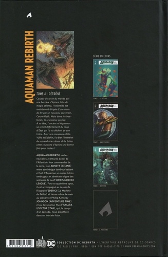 Coupée du reste du monde par une barrière d'épines faite de magie atlante, l'Atlantide est maintenant dirigée d'une main de fer par un nouveau souverain, Corum Roth. Mais dans les bas-fonds, la résistance gronde. A sa tête, l'ancien roi Aquaman se remet difficilement du coup d'Etat qui l'a vu déchoir de son trône. Avec ses nouveaux alliés, Vulko et Dolphin, il a bien l'intention de reprendre les rênes et de briser cette couronne d'épines une bonne fois pour toutes !