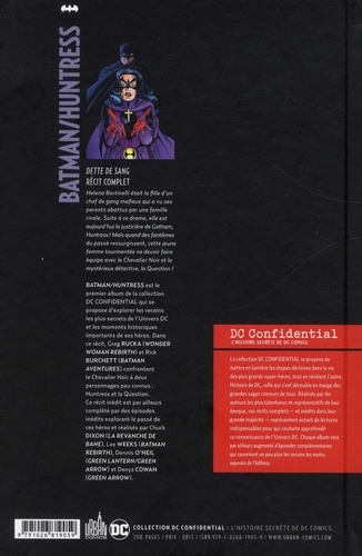 Helena Bertinelli était la fille d'un chef de gang mafieux qui a vu ses parents abattus par une famille rivale. Suite à ce drame, elle est aujourd'hui la justicière de Gotham, Huntress ! Mais quand des fantômes du passé ressurgissent, cette jeune femme tourmentée va devoir faire équipe avec le Chevalier Noir et le mystérieux détective, la Question !