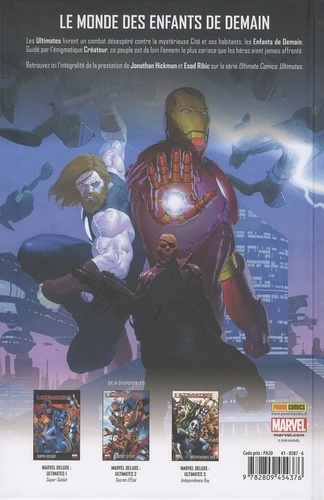 Les Ultimates livrent un combat désespéré contre la mystérieuse Cité et ses habitants, les Enfants de Demain. Guidé par l'énigmatique Créateur, ce peuple est de loin l'ennemi le plus coriace que les héros aient jamais affronté. Retrouvez ici l'intégralité de la prestation de Jonathan Hickman et Esad Ribic sur la série Ultimate Comics : Ultimates.