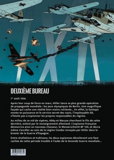 Après la perte du magnétron, Maryse, toujours aidée de son amie Abby, se lance au secours de son fils Michel retenu par les services secrets allemands. La jeune femme travaille toujours officiellement pour le Deuxième Bureau français, et Abby pour le Secret Intelligence Service britannique. c'est donc sous couverture qu'elles se rendent en Allemagne à l'occasion de la grande fête des Jeux Olympiques. Derrière le décor riant, la réalité est peu moins glorieuse et Maryse et Abby échappent de peu aux nazis lancés à leur poursuite. Mais rien n'arrête une mère en colère, à tel point que Maryse n'hésite pas à infiltrer une base aérienne allemande pour se faire engager et voler sur le prototype du Messerschmidt 109... Une folie qui la conduira en Espagne, où la Légion Condor allemande appuie les Nationalistes de Franco en guerre contre les Républicains. Et où se perdent aussi les dernières traces laissées par Michel...