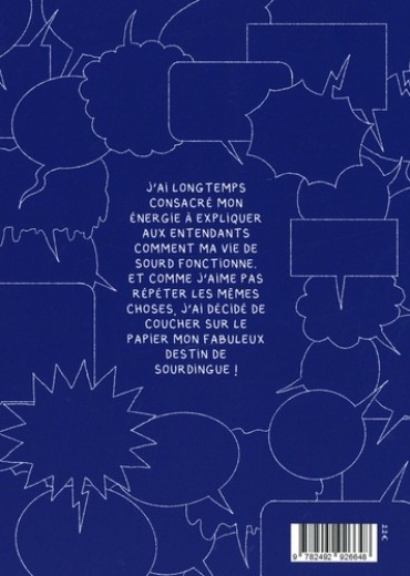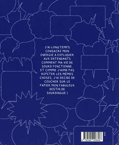 Coco Chanel a refusé d'écrire son autobiographie, affirmant qu'elle n'avait pas de mémoire et que "Si tout le monde sait tout de vous, vous devenez comme tout le monde" . Contrairement à elle, je ne suis pas encore une icône de la mode, mais je raconte ma vie avec style ! Ma BD s'inspire de ma vie quotidienne, je raconte avec humour des anecdotes liées à la surdité. Dialogues de sourd, c'est une mise en abyme de la complexité relationnelle entre deux mondes différents qui ne savent pas comment communiquer. J'ai longtemps consacré mon énergie à expliquer et répéter aux entendants comment ma vie de sourd fonctionne : oui, les sourds peuvent (par exemple) conduire aussi ! Et comme j'aime pas répéter les mêmes choses, j'ai décidé de coucher sur le papier mon fabuleux destin de sourdingue. D'ailleurs, j'ai toujours pas trouvé le temps de réviser le code.