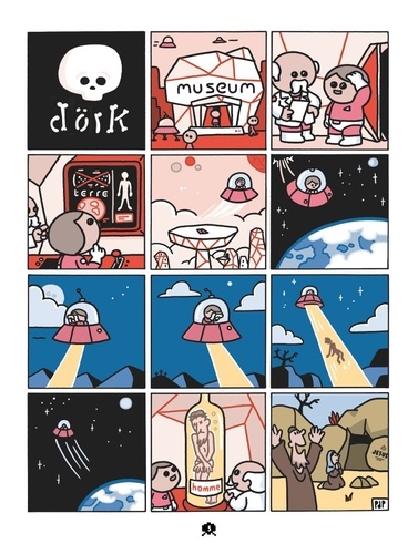 Bienvenue dans la galaxie Dickie ! Qui n'a jamais rêvé de devenir cosmonaute et de parcourir l'immensité de l'univers pour tenter de répondre à cette grande question : existe-t-il de la vie ailleurs ? Dickie a réalisé ce rêve. Sauf que chez lui, l'espace est surtout le lieu propice à toutes sortes de catastrophes... Car ici, les guerres interstellaires se déclenchent par simples quiproquos, les aliens aiment dessiner des sexes gigantesques dans les champs de blé et les cosmonautes dépressifs tentent de se pendre en apesanteur. Bref, on peut dire que, contrairement à notre belle planète Terre, le monde de Dickie ne tourne pas très rond... mais c'est aussi pour ça qu'on l'adore ! Vous l'aurez compris, après l'Histoire avec Le Fils d'Hitler, le cinéma avec Dickie à Hollywood, les contes de fées avec Prince Dickie, et à peu près tout avec Le petit Dickie illustré, le personnage culte de Pieter De Poortere débarque dans l'espace ! L'occasion pour l'auteur flamand de revisiter les thèmes et situations emblématique de la science-fiction, le tout sans une parole, avec cet humour noir et ce sens du gag et de l'absurde qu'il manie à la perfection.