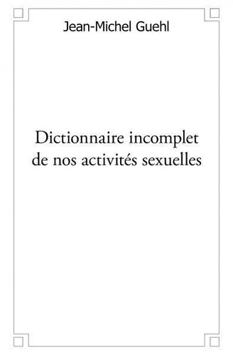 Hormis un très petit nombre de professionnels très spécialisés dans la chose, ce Dictionnaire incomplet de nos activités sexuelles s'adresse à tous, simple curieux de la chose, amateurs de la chose, étudiants de la chose et même enseignants de la chose. Oui bien sûr, il est incomplet, car la chose est vaste. Malgré tout, Jean-Michel Guehl, joueur de mots, comme il se désigne, nous entraine à travers ses définitions dans des excursions tout autour de la planète sexe. Certaines sont coquines ou grivoises, mais d'autres sont inquiétantes, voire effrayantes, et elles nous font voyager dans les contrées hostiles de la perversion. Laissez-vous entraîner au gré des mots et de leurs définitions dans ce curieux dictionnaire qui ne manquera pas de vous faire rire et parfois réfléchir. Vous vous surprendrez à citer certaines définitions lors de dîners entre amis, pour la joie de tous.
