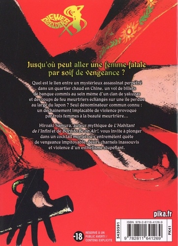 Quel est le lien entre un mystérieux assassinat perpétré dans un quartier chaud en Chine, un vol de billets de banque commis au sein même d'un clan de yakuzas et des coups de feu meurtriers échangés sur une île perdue au large du Japon ? Seul dénominateur commun connu : un déchaînement implacable de violence provoqué par trois femmes à la beauté meurtrière... Hiroaki Samura, auteur mythique de L'Habitant de l'Infini et de Born to Be on Air ! , vous invite à plonger dans un cocktail mortel où s'entremêlent quête de vengeance impitoyable, désirs charnels inassouvis et violence d'un esthétisme stupéfiant.
