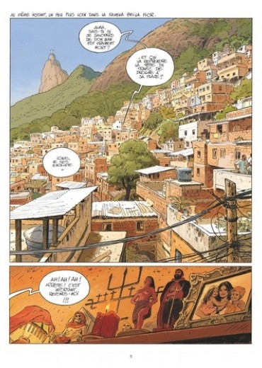 Rubeus et Nina sont nés dans l'une des plus grandes favelas de Rio de Janeiro. Ils sont livrés à eux-mêmes le jour où leur mère est assassinée par Jonas, le flic véreux dont elle était l'indic et l'amante. Recueillis par Bakar, un gamin débrouillard, ils rejoignent un gang d'enfants des rues. Entre pauvreté et violence, les petites combines semblent le seul moyen pour s'en sortir... Mais il existe une autre alternative : l'adoption par une famille riche. Hanté par le meurtre de sa mère et désormais responsable de sa jeune sœur, Rubeus va ainsi passer de la misère des favelas et de la rue à la haute bourgeoisie brésilienne, et découvrir les différents versants d'une société métissée, brutale et inégalitaire.À travers le parcours de ce garçon en perte de repères, Rio dresse un portrait contemporain du Brésil dans la lignée de La Cité de Dieu. Accompagné au scénario par la brésilienne Louise Garcia, Corentin Rouge (Juarez) s'affirme comme l'un des nouveaux maîtres du dessin réaliste.
