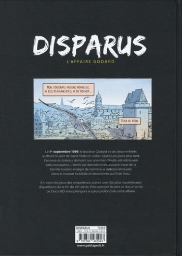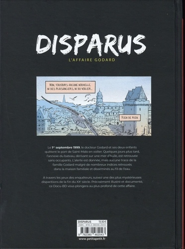 Le 1er septembre 1999, le docteur Godard et ses deux enfants quittent le port de Saint-Malo en voilier. Quelques jours plus tard, l'annexe du bateau, dérivant sur une mer d'huile, est retrouvée sans occupants. L'alerte est donnée, mais aucune trace de la famille Godard malgré de nombreux indices retrouvés dans la maison familiale et disséminés au fil de l'eau. A travers les yeux des enquêteurs, suivez une des plus mystérieuses disparitions de la fin du XXe siècle. Précisément illustré et documenté, ce Docu-BD vous plongera au plus profond de cette affaire.