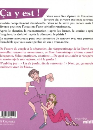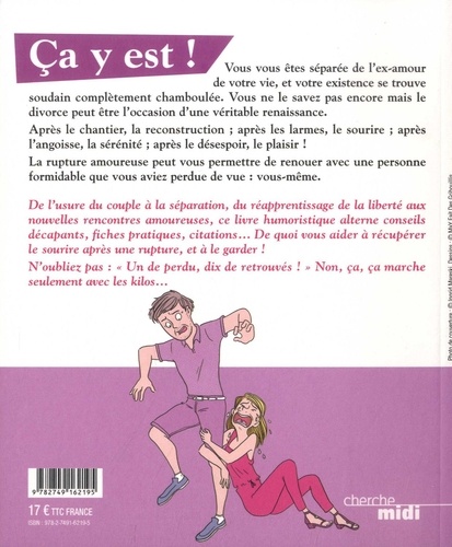 Non seulement je suis divorcée, mais en plus j'adore ça ! Ca y est ! Vous vous êtes séparée de l'ex-amour de votre vie, et votre existence se trouve soudain complètement chamboulée. Vous ne le savez pas encore mais le divorce peut être l'occasion d'une véritable renaissance. Après le chantier, la reconstruction ; après les larmes, le sourire ; après l'angoisse, la sérénité ; après le désespoir, le plaisir ! La rupture amoureuse peut vous permettre de renouer avec une personne formidable que vous aviez perdue de vue : vous-même. De l'usure du couple à la séparation, du réapprentissage de la liberté aux nouvelles rencontres amoureuses, ce livre humoristique alterne conseils décapants, fiches pratiques, citations... De quoi vous aider à récupérer le sourire après une rupture, et à le garder ! N'oubliez pas : " Un de perdu, dix de retrouvés ! "... Non, ça, ça marche seulement avec les kilos...