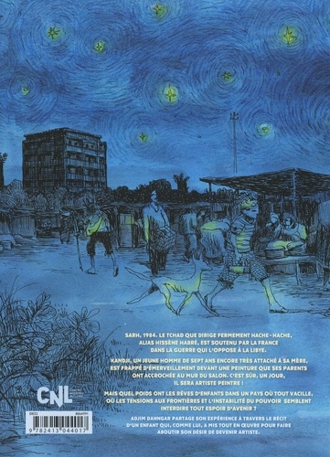 Sarh, 1984. Kandji, sept ans, s'émerveille devant une peinture accrochée au mur du salon. Ebloui par la scène et les couleurs du paysage, il se fait la promesse de devenir peintre alors que le Tchad traverse une des périodes les plus violentes de son histoire. Djarabane, "Que faire" en langue Sara, est une réflexion sur l'exil et la place des rêves d'enfants dans un contexte politique précaire.