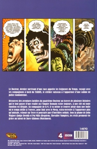 Le Docteur, dernier survivant d'une race appelée les Seigneurs du Temps, voyage avec ses compagnons à bord du TARDIS, le célèbre vaisseau à l'apparence d'une cabine de police londonienne. Découvrez des aventures inédites du quatrième Docteur au travers de plusieurs histoires qui le font passer d'une réalité où l'Empire Romain existe toujours, à une cité où toute émotion est illégale. En compagnie de K-9, il va même se trouver piégé dans une bulle où le temps défile à l'envers, pour finir avec le Meep, extra-terrestre à l'apparence plus qu'amicale, échoué sur Terre et poursuivi par d'horribles soldats. Sous la plume de John Wagner (Judge Dredd) et Pat Mills (Requiem, Chevalier Vampire), les récits prennent vie grâce au talent de Dave Gibbons (Watchmen).