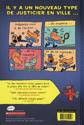 Les escrocs et les bandits n'ont qu'à bien se tenir. Dog Man arrive en France et en Belgique. Initialement publié en 2016 aux Etats-Unis, Dav Pilkey a déjà su séduire des millions de jeunes lecteurs avec son style minimaliste et les aventures drôles et décalées de ce chien policier. Dog Man, un peu comme Superman, serait né selon la légende, dans la cervelle de deux jeunes ados, Georges et Harold, qui bien des années plus tard décident de ressusciter leur héros mi-homme, mi-chien. Dog Man a ainsi été créé à la suite d'une intervention chirurgicale, en fusionnant, après un attentat, le corps d'un officier de police balaise et fan de kung-fu avec la tête de son chien chétif mais futé. Guidé par son flair et ses instincts, Dog Man deviendra-t-il le plus grand policier du monde ? Il est surtout le seul à pouvoir déjouer les stratagèmes de son ennemi juré, le chat roux et machiavélique Lepetit.