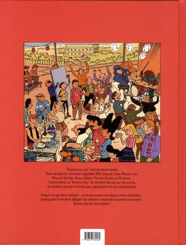 "Chacun son con comme disait l'autre. Dans ce quartier, les cons s'appellent Bill, Jacques, Tonia, Mounia, Léo, Mourad, Damien, Omar, Odette, Patrick, Gourez et Christine... Comme dans un 'Domino Day", ils tombent les uns sur les autres en révélant une part d'ombre peu réjouissante de leur personnalité. Jusqu'à ce que deux enfants — cons eux aussi mais depuis moins d'années — provoquent la chute et obligent les adultes à reprendre la partie autrement... Banne chance, les enfants I