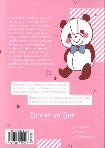 Dreamin' Sun, première série à succès d'Ichigo Takano, s'impose comme une comédie romantique pop et survitaminée. Entre rêves et sentiments, suivez le quotidien d'adolescents qui cherchent leur voie. Depuis le remariage de son père, Shimana ne se sent plus à sa place au sein de son foyer. Alors un jour, elle décide de fuguer... C'est au sein d'une colocation avec trois beaux jeunes hommes qu'elle trouvera refuge. Mais pour habiter dans cette demeure, il y a une condition : il est impératif d'avoir un rêve et de se donner les moyens de le réaliser. Hélas, Shimana, toujours endeuillée et perdue, ne sait pas ce qu'elle veut faire de sa vie...