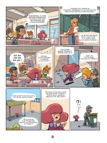 Alexandrine a un don qui la rend unique : elle ne s'exprime qu'en alexandrins. Souvent incomprise par ses camarades, elle boude l'école et préfère la compagnie de ses deux étranges bestioles, Stokk et Mastokk, qui elles aussi parlent en rimes. Débordant d'énergie, la malicieuse gamine décide de s'occuper de tous ceux qui sont en manque de poésie. Elle endosse donc le costume d'assistante-poète pour aider les cas désespérés en mal de langage ra né. De rencontres en rencontres, elle aide chacun à mieux vivre sa vie avec humour et sensibilité.