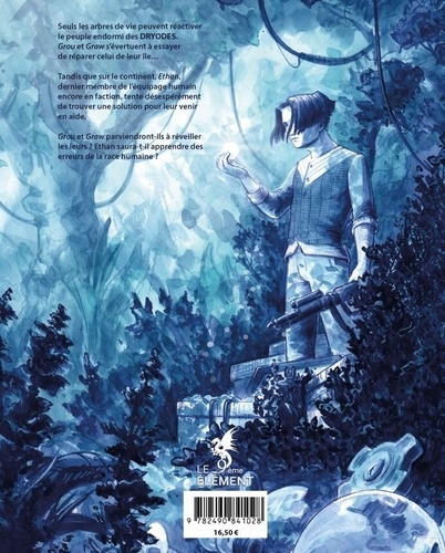 La suite des aventures des Dryodes dans laquelle Grou et Graw vont tenter de réactiver les arbres de vies afin de réveiller leur peuple. Sur le continent, Ethan, dernier membre de l'équipage humain encore en faction, tente désespérément de trouver une solution pour leur venir en aide. Grou et Graw s'évertuent à essayer de réparer l'arbre de vie de leur île. Mais parviendront-ils à réveiller leurs semblables ? Ethan saura-t-il apprendre des erreurs de la race humaine ? L'auteure à travers cette bd nous fait réfléchir au positionnement de la nature humaine face à un nouveau monde découvert et plein de ressources. L'homme restera-t-il toujours un prédateur et un destructeur du monde qui l'entoure ? Peut-on espérer une prise de conscience collective ?
