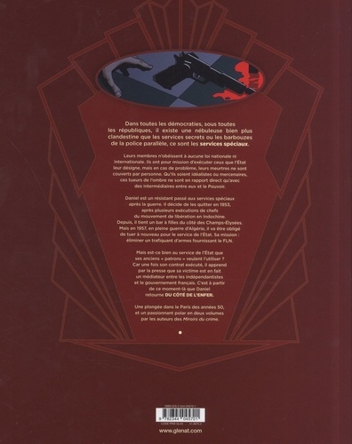 Entrez dans le cercle fermé des services spéciaux. Paris, 1958. Dan a travaillé jadis pour les services très spéciaux qui exécutaient des crimes commandités par l'Etat. Aujourd'hui, il reprend du service. En compagnie de Fred, il va opérer dans la plus grande opacité. Ses missions ? Eliminer des hommes qui seraient liés au FLN et d'autres cibles nuisibles pour le gouvernent. D'Alger à Hambourg, il enchaîne les contrats en obéissant aux ordres " d'en haut ". Mais certaines missions obscures soulèvent des questions. A Alger, la situation dérape. Dan ne veut pas être le jouet d'une logique qui lui échappe ! Parfois, il ne sait même pas qui est l'homme à qui il vient d'ôter la vie. Malgré tout, il poursuit sa vengeance dans l'ombre : il n'a jamais oublié le meurtre de Jo et de Mona perpétré par le commissaire Brulls ! Mais Dan doit rester prudent : les règlements de comptes internes risquent de faire couler beaucoup de sang et si d'après les rumeurs, le général de Gaulle accède à la présidence, un " grand ménage " pourrait commencer parmi les exécutants.