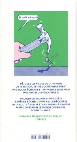 Patatras ! Un meuble s'effondre dans votre salon, et votre journée prend une tout autre tournure. Comment remplacer vite fait bien fait ce meuble indélicat ? Aller dans un dépôt de seconde main ? Foncer dans le magasin IKAE le plus proche ? Ou se lancer dans cette grande aventure que constitue la confection d'une étagère sur mesure avec une artisane de choc ? Avec Du Pin sur la planche, prenez votre destin en main et déjouez les pièges de la grande distribution ! Meubler un salon est une quête semée de bûches : vous seul. e déciderez de la route à suivre et des arbres à abattre pour construire le monde de demain... Bonne chance ! Issu d'un partenariat entre la menuiserie Gris Bois et les Editions 2024, co-écrit par Caroline Klein et Olivier Bron, dessiné par Timothée Ostermann, ce livre dont vous êtes le héros est une épopée ludique et sarcastique traversant le monde de la menuiserie. Il questionne les rapports que nous avons avec la matière bois, mais décrit aussi nos paysages intérieurs autour de la normalisation et de la grande industrialisation des meubles et du lien que cela porte dans nos paysages extérieurs, au travers de nos forêts et de notre relation avec le vivant et la biodiversité. En projetant le. a lecteur. ice comme héros. ïnes d'un livre à choix multiples, il permet à chacun. e de devenir maître du changement et de s'approprier ce savoir !