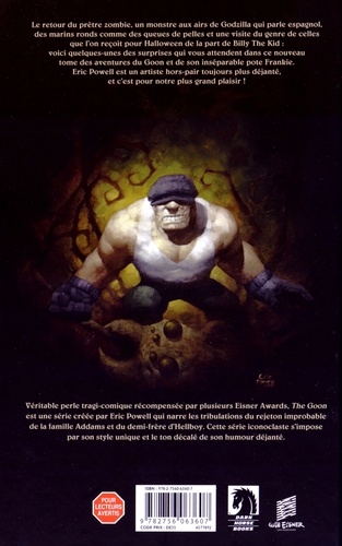 Le retour du prêtre zombie, un monstre aux airs de Godzilla qui parle espagnol, des marins ronds comme des queues de pelles et une visite du genre de celles que l'on reçoit pour Halloween de la part de Billy The Kid : voici quelques-unes des surprises qui vous attendent dans ce nouveau tome des aventures du Goon et de son inséparable pote Frankie. Eric Powell est un artiste hors-pair toujours plus déjanté, et c'est pour notre plus grand plaisir ! Véritable perle tragi-comique récompensée par plusieurs Eisner Awards, The Goon est une série créée par Eric Powell qui narre les tribulations du rejeton improbable de la famille Addams et du demi-frère d'Hellboy. Cette série iconoclaste s'impose par son style unique et le ton décalé de son humour déjanté.