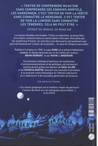 La maison Atréides est tombée. Trahis et endeuillés, le jeune Paul et sa mère s'enfuient dans le mortel désert d'Arrakis. Recueillis par les mystérieux Fremen, ils vont faire une découverte extraordinaire qui pourrait bouleverser l'avenir de la planète... et celui de l'Empire tout entier. Publiée à l'origine en 1965, la saga Dune est à présent fidèlement adaptée en bande dessinée parle fils même de l'auteur, Brian Herbert, et par Kevin J. Anderson. Cet étonnant mélange d'aventure, de mysticisme, d'environnementalisme et de politique, est retranscrit comme jamais grâce aux dessins de Raúl Allén et de Patricia Martín, donnant une nouvelle incarnation à ce puissant conte fantastique et l'offrant à découvrir ou à redécouvrir à de nouvelles génération de lecteurs.