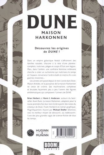 Dans un empire galactique féodal s'affrontent des familles vassales, chacune à la tête d'une planète : complots, traîtrises, pièges et coups d'Etat sont légion. Mais, dans l'ombre, une confrérie féminine millénaire cherche à créer un surhomme qui maîtrisera le temps et l'espace, renversera l'ordre établi et mettra fin à ces guerres intestines... Les années ont passé depuis le récit conté dans Dune : Maison Atréides, et la puissance de la maison Harkonnen ne cesse de croître. Ses machinations complexes et brutales façonnent peu à peu l'avenir des figures emblématiques qui composent le monde de DUNE. Brian Herbert et Kevin J. Anderson, auteurs du best-seller Avant Dune : La Maison Harkonnen, adaptent pour la toute première fois leur récit (créé à partir des notes du créateur de Dune, Frank Herbert) en roman graphique. Magnifiquement illustré par Michael Shelfer (Domino), voici le meilleur moyen de découvrir ou redécouvrir l'une des plus grandes sagas de science-fiction de tous les temps.
