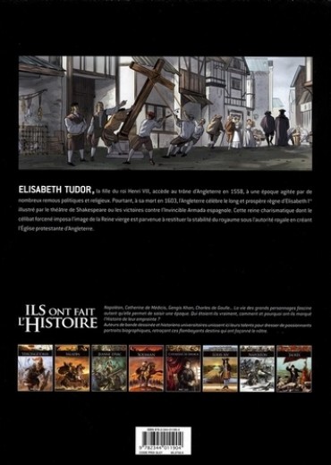 Fille du roi Henri VIII, Elisabeth Tudor accède au trône d'Angleterre au cœur de nombreux remous politiques. En rivalité avec sa demi-sœur Marie Tudor, elle est celle qui parviendra finalement à restituer la stabilité du royaume sous l'autorité royale, coupant les liens avec le Pape en créant l'Église protestante d'Angleterre. Elle est également celle qui parviendra à imposer sa féminité dans un monde d'hommes. Éternelle vierge, elle ne se mariera jamais et verra la lignée Tudor s'éteindre avec elle.Découvrez le destin de l'une des figures les plus célèbres de l'histoire d'Angleterre. Celle dont le règne, associé à l'épanouissement du théâtre anglais – représenté par William Shakespeare et Christopher Marlowe – et aux prouesses maritimes d'aventuriers comme Francis Drake, signe l'apogée de la Renaissance anglaise.