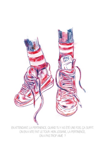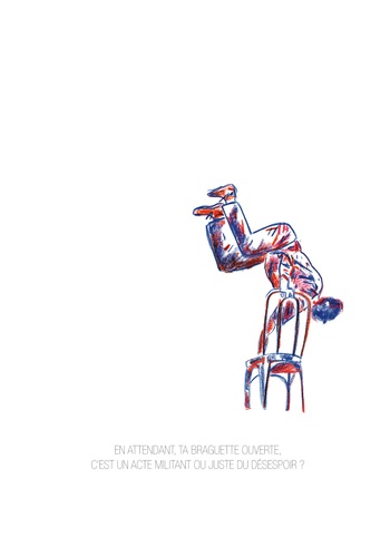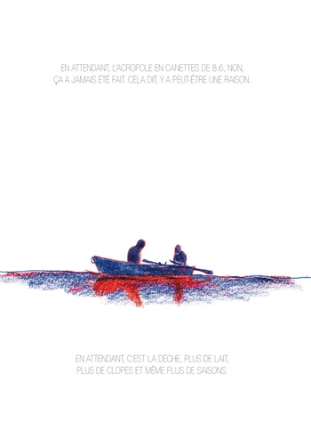 " En attendant, c'est les petites punchlines de deux amis dont un s'est fait plaquer, des instantanés, des petits morceaux de désoeuvrement, des bilans de rien, des réflexions de bitume et d'appart mal rangé, de rupture amoureuse et de lendemains de fêtes, comme ça, en attendant que ça passe, le temps d'un mois d'octobre en suspens. " - Fabrice Caro " On n'arrivait pas a prendre une décision sur un projet... alors, en attendant, j'ai demandé à fab de me montrer ses écrits, j'ai pris un ou deux mois pour dessiner... hors des cases... la possibilité du dessin. Simplement me frotter à ses textes sans qu'il me vampirise. Il me donne la liberté totale de représentation, alors je dessine ce que je veux, en rouge et bleu parce que j'ai acheté un lot sur une brocante. Ses punchlines, c'est de l'amour 2018, ça sent la nuit et les matins raides, les tiraillements, les instants seconds, j'ai pas toujours collé mes dessins au texte, des fois les émotions du texte me faisait penser à un autre truc... des sentiments parallèles. Je sais ce qu'il veut raconter. " - Gilles Rochier Second volume de la collection Asterozoa, consacrée au dessin contemporain, En attendant est une collaboration entre deux auteurs de bande dessinée aux univers singuliers et pas forcément complémen-taires. Fabrice Caro écrit une série de punchlines retranscrivant une conversation entre deux amis, instantanés d'émotions attrapées en vol, conversation livrée à Gilles Rochier qui, avec deux crayons de couleurs (rouge et bleu), va les accueillir dans son univers graphique, les laisser rebondir au fil de sa pensée. Le tout est mélangé à la manière d'un cut-up, construisent de nouveaux rapports entre textes et dessins, un nouveau fil de pensée, une matière qui raconte des instants du monde et des fragments de vie.