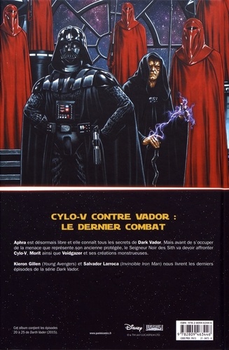 Aphra est désormais libre et elle connaît tous les secrets de Dark Vador. Mais avant de s'occuper de la menace que représente son ancienne protégée, le Seigneur Noir des Sith va devoir affronter Cylo-V, Morit ainsi que Voidgazer et ses créations monstrueuses. Kieron Gillen (Young Avengers) et Salvador Larroca (Invincible Iron Man) nous livrent les derniers épisodes de la série Dark Vador.