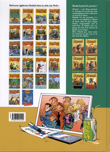 Boulard prend le pouvoir ! Attention : voici Thierry Boulard, le champion du monde des notes catastrophiques et des ronflements au fond de la classe. Médaille d'or de cancritude, il a aussi une vie trépidante en dehors du lycée, faite de plans drague foireux, d'engueulades avec le petit frère, de répètes avec son groupe de rock et de séances de glande sur le canapé. Alors n'hésitez pas, venez suivre les aventures du plus mou et du plus cool des rebelles !