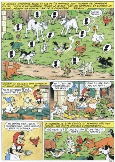 Les aventures de Sylvain et Sylvette, c'est tout un monde. D'abord, il y a les deux héros. Avec leurs petits sabots, leurs gentilles frimousses et leurs délicieuses taches de rousseur. Au début, ils vivaient avec leur mère. Mais un jour, lors d'une cueillette de champignons, ils se sont égarés dans la forêt. Depuis, ils ont appris l'indépendance et la débrouillardise. Et aujourd'hui, ils mènent une vie paisible à l'abri de leur chaumière. Enfin, "paisible", c'est vite dit. Car les quatre Compères ne sont jamais bien loin ! Le renard, le loup, l'ours et le sanglier n'ont de cesse d'entrer chez eux afin de dérober leurs provisions... Heureusement, nos petits amis peuvent compter sur les autres animaux : Cui-cui l'oiseau, Raton le rat blanc, la chèvre Barbichette, l'âne Gris-gris et tous leurs fidèles compagnons... Dans les albums de Sylvain et Sylvette, Jean-Louis Pesch laisse libre cours à son amour de la nature, figure centrale de ses histoires. Nostalgique de son enfance à la campagne, il met en scène un monde idéal où règne une douce harmonie entre les gens, les bêtes et l'environnement. Quand il s'arrête de dessiner, il milite au sein d'une association pour la protection des éléphants et des rhinocéros, se bat contre les zoos ou part en guerre contre l'expérimentation animale. Et vit dans un manoir campagnard, entouré de brebis, de chevaux, de chiens, de chats, de poules et d'une chèvre. Une véritable arche de Noé, en somme... à l'image du petit monde de Sylvain et Sylvette !