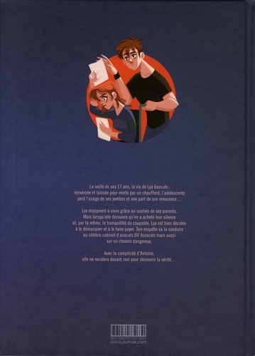 A la veille de ses 17 ans, Lya se fait renverser par un chauffard qui prend la fuite, la laissant pour morte. Elle survivra mais devra rester en fauteuil roulant toute sa vie. Quatre années plus tard, elle termine son DUT Carrières juridiques et décroche un stage dans le cabinet d'avocats le plus prestigieux de la ville, celui du célèbre et médiatique maître Martin de Villegan. Son stage n'a pas été choisi par hasard, bien au contraire. C'est ce même cabinet qui a réglé son cas des années auparavant. Ses parents ne lui en ont rien dit mais elle a découvert qu'ils avaient été achetés pour éviter des poursuites juridiques. Bien décidée à retrouver celui qui l'a renversée et à lui faire payer, elle va se mettre en quête du dossier. Un jeu dangereux commence alors et sa soif de vengeance ne sera pas sans conséquences...
