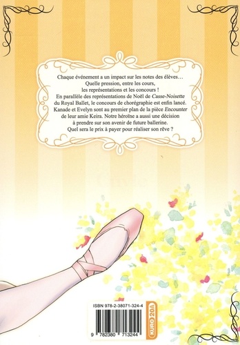 Chaque événement a un impact sur les notes des élèves... Quelle pression, entre les cours, les représentations et les concours ! En parallèle des représentations de Noël de Casse-Noisette du Royal Ballet, le concours de chorégraphie est enfin lancé. Kanade et Evelyn sont au premier plan de la pièce Encounter de leur amie Keira. Notre héroïne a aussi une décision à prendre sur son avenir de future ballerine. Quel sera le prix à payer pour réaliser son rêve ?