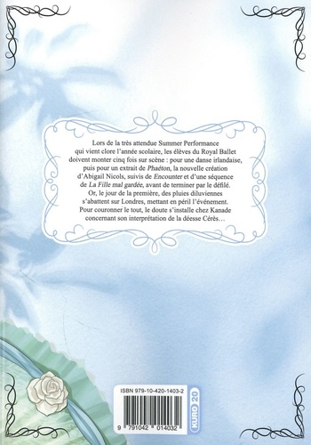 Manga de danse au graphisme sublime, En scène ! décrit avec passion et drame humain les premiers pas d'une jeune ballerine dans la compétition classique. Lors de la très attendue Summer Performance qui vient clore l'année scolaire, les élèves du Royal Ballet doivent monter cinq fois sur scène : pour une danse irlandaise, puis pour un extrait de Phaéton , la nouvelle création d'Abigail Nicols, suivis de Encounter et d'une séquence de La Fille mal gardée , avant de terminer par le défilé. Or, le jour de la première, des pluies diluviennes s'abattent sur Londres, mettant en péril l'événement. Pour couronner le tout, le doute s'installe chez Kanade concernant son interprétation de la déesse Cérès...