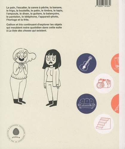 Cathon et Iris aiment les objets. Les objets amusants, brillants, décoratifs, mobiles, pliables ou fashion... Les deux auteures aiment tellement les objets qu'elles nous proposent une suite à La liste des choses qui existent ! Dans Encore plus de choses qui existent vous apprendrez entre autres d'où viennent la canne à pêche, le timbre poste ou l'ampoule électrique. Véritable encyclopédie ludique, ce livre est, une fois de plus, le résultat d'un travail à quatre mains par Cathon et Iris.