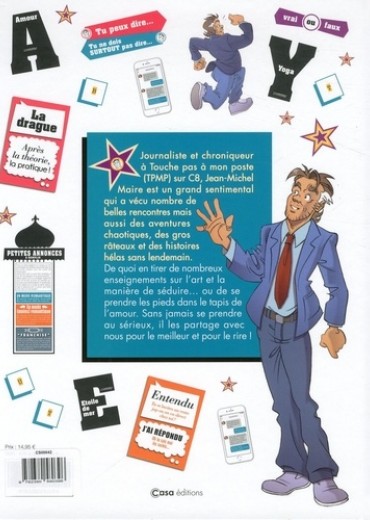 Journaliste et chroniqueur à Touche pas à mon poste (TPMP) sur C8, Jean-Michel Maire est un grand sentimental qui a vécu nombre de belles rencontres mais aussi des aventures chaotiques, des gros râteaux et des histoires hélas sans lendemain. De quoi en tirer de nombreux enseignements sur l'art et la manière de séduire... ou de se prendre les pieds dans le tapis de l'amour. Sans jamais se prendre au sérieux, il les partage avec nous pour le meilleur et pour le rire !