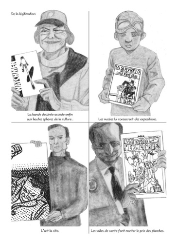 La thématique du numéro enfin légitime ? Les 30 dernières années ont fait entrer la bande dessinée dans la cour des grands domaines culturels et artistiques. Fini le vieil illustré idiot qui dissuaderait l'enfant de se tourner vers les "vrais" livres, fini l'amateur honteux, rasant les murs, à la recherche de sa dose de dessins et de textes. Place aux livres de bande dessinée caracolant en tête des ventes de livres "tous genres confondus", aux émissions spécialisées et aux rubriques dédiées fleurissant dans l'ensemble des médias, aux écoles, aux innombrables festivals. N'apparaissent plus que furtivement, ici et là, quelques détracteurs faisant plus figure de dinosaure qu'autre chose, Tout irait enfin bien dans le milieu du 9e Art ? Au travers de ce numéro de Jade, des auteurs de divers horizons nous livreront, par le biais de récits ou d'entretiens, leur point de vue sur cette fameuse légitimité que l'on dit acquise, établissant la base d'une réflexion critique plus large. Pour ce numéro sur la légitimité du médium, en particulier auprès des institutions, Xavier Guilbert (rédacteur en chef du site du9.org et observateur reconnu du monde de la bande dessinée) sera aux commandes et fera le point à travers plusieurs articles et rencontres sur cette "reconnaissance" dans désirée par les protagonistes de la chose. - Entretien croisé entre Morvandiau et June Misserey, tous deux organisateurs de festivals alternatifs d'envergures sur la bande dessinée qui retraceront les expériences passées de leurs rapports respectifs aux institutionnels (au sein du festival Pierre Feuille Ciseaux -pour June- et du festival Périscopages - pour Morvandiau). - De nombreuses citations et extraits de discours institutionnels seront rassemblés. - entretien avec Gilles Rochier - entretien avec Jochen Gerner