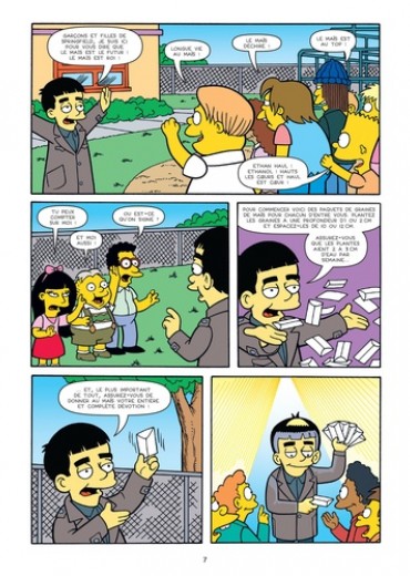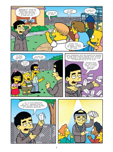 Deux histoires inédites de Bart Simpson ! Les enfants ont un grain : Lorsqu'un nouvel élève provenant du Kansas arrive à l'école, il devient la source de toutes les curiosités. Mais lorsque cet élève s'appelle Ethan Haul et qu'il fait la propagande du carburant bio à base de maïs, c'est toute la ville qui est concernée et qui commence à cultiver dans son jardin son petit lopin de maïs. Mais attention à ce que les engrais ne leur montent pas à la tête ! 12 enfants en colère : Malheur ! Skinner découvre que son bureau a été cambriolé et que ses médailles de guerre ont été volées. Nelson traînant dans le coin, il est très vite accusé. Mais les cours de Madame Krappabel ayant porté leurs fruits, il ne compte pas se laisser faire et porte plainte pour diffamation. Un procès s'organise à l'école dont les jurées ne sont autres que les autres élèves de la classe, des élèves très souvent martyrisés dont le jugement n'est pas forcément impartial.