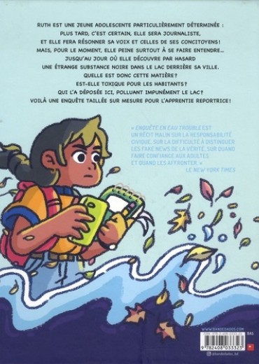 Ruth est une jeune adolescente particulièrement déterminée : plus tard, c'est certain, elle sera journaliste d'investigation, et elle fera résonner sa voix et celles de ses concitoyens ! Mais pour le moment, elle peine surtout à se faire entendre... Au collège comme dans sa famille, les adultes ne semblent jamais l'écouter. C'est tout juste s'ils s'intéressent à sa newsletter, qu'elle envoie pourtant religieusement chaque semaine. Jusqu'au jour où elle découvre par hasard une étrange substance noire dans le lac derrière sa ville. Quelle est donc cette matière ? Est-elle dangereuse, toxique pour les habitants ? Qui l'a déposée ici, polluant impunément le lac ? Est-ce le country club voisin, dont le gérant semble particulièrement louche ? Voilà une enquête taillée sur mesure pour l'apprentie reporter !