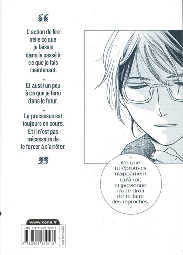 L'action de lire relie ce que je faisais dans le passé à ce que je fais maintenant. Et aussi un peu à ce que je ferai dans le futur. Le processus est toujours en cours. Et il n'est pas nécessaire de le forcer à s'arrêter. Ce que tu éprouves n'appartient qu'à toi, et personne n'a le droit de te faire des reproches.