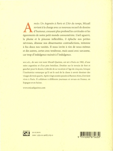 Apres Un Argentin à Paris et L'Air du temps, Micaël revient à la charge avec ce nouveau recueil de dessins d'humour, creusant plus profond les certitudes et les égarements de notre petit monde consumériste. L'oeil aguerri, la plume et le pinceau inflexibles, il épluche nos petites névroses, désosse nos désarmantes contradictions, mitonne à feu doux nos vanités. Il nous invite à rire de nous-mêmes et des autres, certes avec tendresse, mais aussi avec sarcasme, car trop d'indulgence nuirait à l'indulgence.