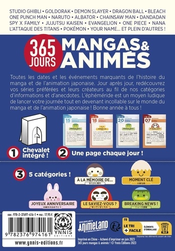 Toutes les dates et les événements marquants de l'histoire du manga et de l'animation japonaise. Jour après jour, redécouvrez vos séries préférées et leurs créateurs au fil de nos catégories d'informations et d'anecdotes. L'éphéméride est un moyen ludique de lancer votre journée tout en devenant incollable sur le monde du manga et de l'animation japonaise ! Bonne année à tous !