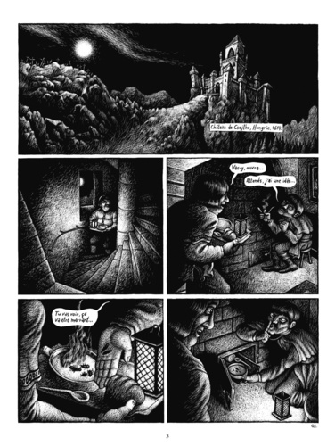 Le conte noir de la comtesse sanglante. Hongrie, XVIIe siècle. La Comtesse Erzsebet Bathory vit dans son château isolé des Carpates. Elle est jeune, elle est belle. Son mari est parti à la guerre. Elle est encline aux passions tourmentées, mais surtout, elle réalise que le Temps, ce voleur implacable, va lui ravir sa beauté. Alors elle sombre dans une folie meurtrière : elle fait assassiner des dizaines de jeunes vierges pour se baigner dans leur sang, persuadée que lui seul peut la préserver du vieillissement. L'histoire de cette meurtrière ayant réellement existé a inspiré régulièrement les créateurs, et notamment Julie Delpy avec son film La Comtesse sorti en avril 2010. Cédric Rassat et Emre Ohrun réalisent un album en carte à gratter époustouflant de noirceur et de virtuosité, imprégné de perversité sexuelle. Une folie gothique.