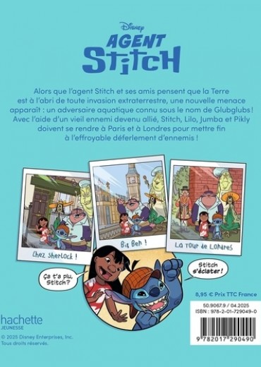 La première bande dessinée Stitch avec une toute nouvelle histoire inédite et drôle dans laquelle le héros bleu doit sauver le monde ! - Une enquête palpitante de l'agent Stitch, accompagné de Lilo, Pickly et Jumba, dans les rues de Paris et de Londres. - Une plume rythmée et toujours aussi impertinente et drôle. - Pour les jeunes lecteurs autonomes, de 7 à 11 ans. Le résumé : Alors que l'agent Stitch et ses amis pensent que la Terre est à l'abri d'une invasion extraterrestre, une nouvelle menace apparaît : un adversaire aquatique connu sous le nom de Glubglubs ! Avec l'aide d'un vieil ennemi devenu allié, Stitch, Lilo, Jumba et Pickly doivent se rendre à Paris et à Londres pour mettre fin à l'effroyable déferlement d'ennemis !