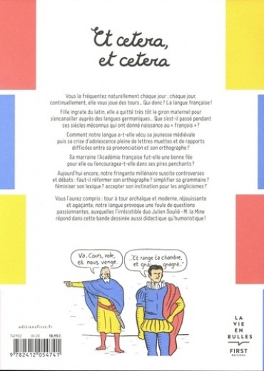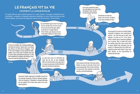 Découvrez l'histoire de la langue française dans une bande dessinée pleine d'humour ! Comment est né le français, et quelles évolutions ont mené à notre manière de parler ? Quel est le rôle de l'Académie française ? Comment le français s'est enrichi de ses échanges avec l'italien, l'arabe, l'anglais ? Pourquoi l'orthographe française est-elle si compliquée ? L'irrésistible duo Julien Soulié-M. La Mine vous raconte l'histoire facétieuse de la langue française dans une bande dessinée passionnante et drôlissime !