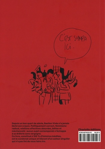 Depuis un bon quart de siècle, Bastien Vivès n'a jamais lâché son crayon. Mieux, entre le politiquement correct, le féminisme radical, les relations affectives absurdes voire la bêtise en général... aucun sujet contemporain n'a échappé à son humour alerte, sa verve graphique et sa drôlerie sans vergogne. Ce livre, constitué à 100 % d'histoires inédites, est le condensé unique et hilarant d'un auteur singulier qui n'a pas fini de nous faire rire.