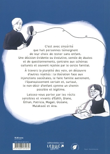 C'est avec sincérité que huit personnes témoignent de leur choix de rester sans enfant. Une décision évidente ou évolutive, semée de doutes et de questionnements, contraire aux schémas culturels et souvent rejetée par le cercle familial. A travers la pluralité des voix, on découvre d'autres réalités : la libération face aux injonctions sociétales, le faire famille autrement, l'épanouissement certain et, surtout, le non-désir d'enfant comme un chemin possible et légitime. Laissez-vous porter par les récits sensibles et vivants d'Edith, Diane, Ethan, Patricia, Magali, Océane, Mulakozé et Ana. Laura Boit aime faire avec sa tête et ses mains. Touche-à-tout et autodidacte, elle s'épanouit dans plusieurs domaines. Des études d'architecture à l'ouverture de son restaurant, en passant par la programmation informatique et la réalisation de podcasts, elle nourrit une passion et une curiosité insatiable pour les arts et la création au sens large ! Elle est la fondatrice du podcast MôME ? , visant à libérer la parole autour du non-désir d'enfant. @mome_podcast. Illustrateurice et auteurice, Nade considère l'illustration comme un outil incontournable pour évoluer vers une société équitable et respectueuse de toustes. Iel crée et cocrée des projets adulte et jeunesse qui favorisent l'expression, le dialogue et la transmission autour de la justice sociale, du féminisme, de la santé physique et mentale ou encore de l'écologie. @nade_illustrations