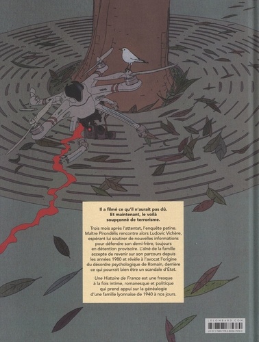 Il a filmé ce qu'il n'aurait pas dû. Et maintenant, le voilà soupçonné de terrorisme. Trois mois après l'attentat, l'enquête patine. Maître Pirondélis rencontre alors Ludovic Vichère, espérant lui soutirer de nouvelles informations pour défendre son demi-frère, toujours en détention provisoire. L'aîné de la famille accepte de revenir sur son parcours depuis les années 1980 et révèle à l'avocat l'origine du désordre psychologique de Romain, derrière ce qui pourrait bien être un scandale d'Etat. Une Histoire de France est une fresque à la fois intime, romanesque et politique qui prend appui sur la généalogie d'une famille lyonnaise de 1940 à nos jours.