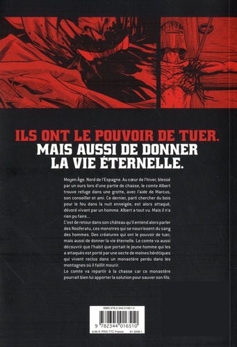 Ils ont le pouvoir de tuer. mais aussi de donner la vie éternelle. Moyen Age. Nord de l'Espagne. Au coeur de l'hiver, blessé par un ours lors d'une partie de chasse, le comte Albert trouve refuge dans une grotte, avec l'aide de Marcus, son conseiller et ami. Ce dernier, parti chercher du bois pour le feu dans la nuit enneigée, est alors attaqué, dévoré vivant par un homme. Albert a tout vu. Mais il n'a rien pu faire... C'est de retour dans son château qu'il entend alors parler des Nosferatu, ces monstres qui se nourrissent du sang des hommes. Des créatures qui ont le pouvoir de tuer, mais aussi de donner la vie éternelle. Le comte va aussi découvrir que l'habit que portait le jeune homme qui les a attaqués est porté par une secte de moines hérétiques qui vivent reclus dans un monastère perdu dans les montagnes où il faillit mourir. Le comte va repartir à la chasse car ce monastère pourrait bien lui apporter la solution pour sauver son fils.
