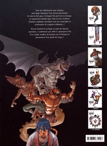 Tous les adolescents sont uniques, mais Ange Tomassini l'est encore davantage ! Et cela lui fait peur. A chaque fois qu'il est en danger, un mystérieux homme-tigre vient le tirer d'affaire. Comment expliquer autrement que ses camarades et professeurs le craignent tellement ? Encore faudrait-il qu'Ange se pose les bonnes questions, à commencer par celle-ci : pourquoi le fils d'un simple vendeur de poisson est-il flanqué en permanence d'un garde du corps ?