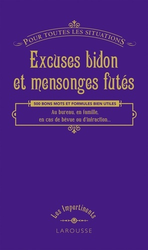 Parce qu'il n'est pas toujours facile d'avoir de la répartie en société, parce qu'il arrive que l'on formule mal ou pas du tout une phrase qui peut s'avérer décisive, cette collection sortira de l'embarras toutes celles et ceux qui ne trouvent pas leurs mots ! Excuses bidons et mensonges futés (pour toutes les situations) : c'en est finit des bourdes, des oublis malencontreux, vous êtes parfait et cela s'entend ! Dans la même collection : Clichés et platitudes (pour meubler la conversation) : ne jamais faire d'impaire, rester diplomate et se fondre dans le décor, c'est possible ! Insultes et réparties (pour toutes les occasions) : ne restez plus sans voix, renvoyez la balle au bond et frappez fort ! Techniques d'approche pour dragueurs amateurs : pour attirer l'attention, charmer ou conclure. Rien que des mots ! Décalés, drôles, mais toujours efficaces, ces 4 guides de conversation résolument modernes répondent à toutes les situations.